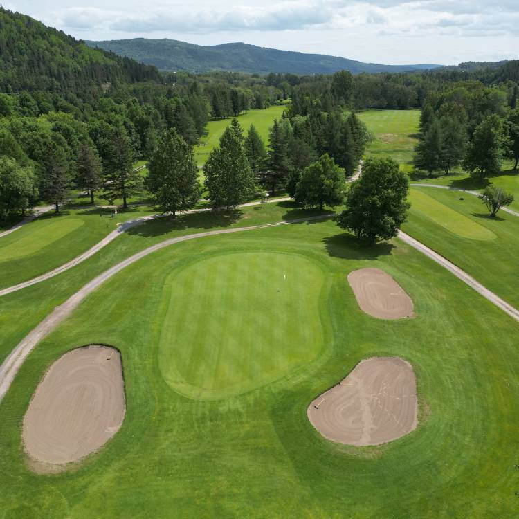 La vue sur les montagnes en fond de terrain est magnifique. Un partie de golf en pleine nature sur un terrain conçu parfaitement pour vous donner un défi et vous procurer du plaisir!